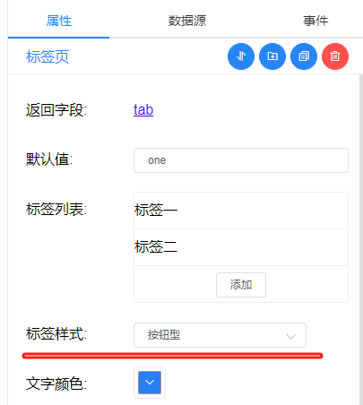 返回字段,需要绑定一个页面变量,这里绑定的是 tab 默认值控制首次打开哪个标签页