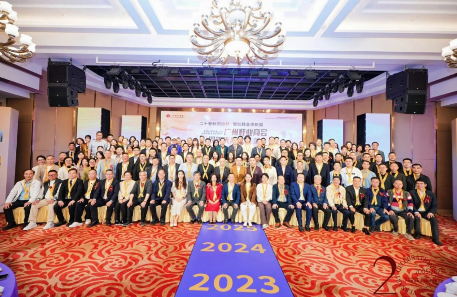 时光荏苒,初心如磐;二十载栉风沐雨,二十载聚力同行。2025年12月22日,以“二十春秋同追梦 智创鞋业焕新篇”为主题的广州鞋业商会20周年庆典大会在华丽宫大酒楼主宴会厅隆重举行。政府相关部门领导、商会全体会员、行业商协会代表等近500位嘉宾齐聚一堂,共忆奋斗征程,共话行业未来,共同见证广州鞋业商会二十周年的荣耀时刻。自成立以来,广州鞋业商会始终坚守“凝聚行业力量、赋能企业发展”的初心使命,依托广